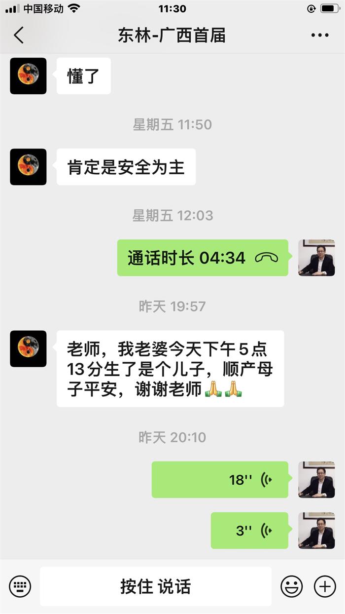 从2021年9月20日11:00,桂林学生俸东林发来推土机正在施工拆除他家后座那栋老房子的视频起,至2024年7月18日(前天)19:57收到东林微信告知喜得麟儿这条信息止,我真正的首次体验了周易从业三十年来什么叫“如释负重”!